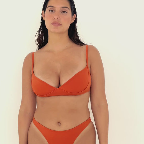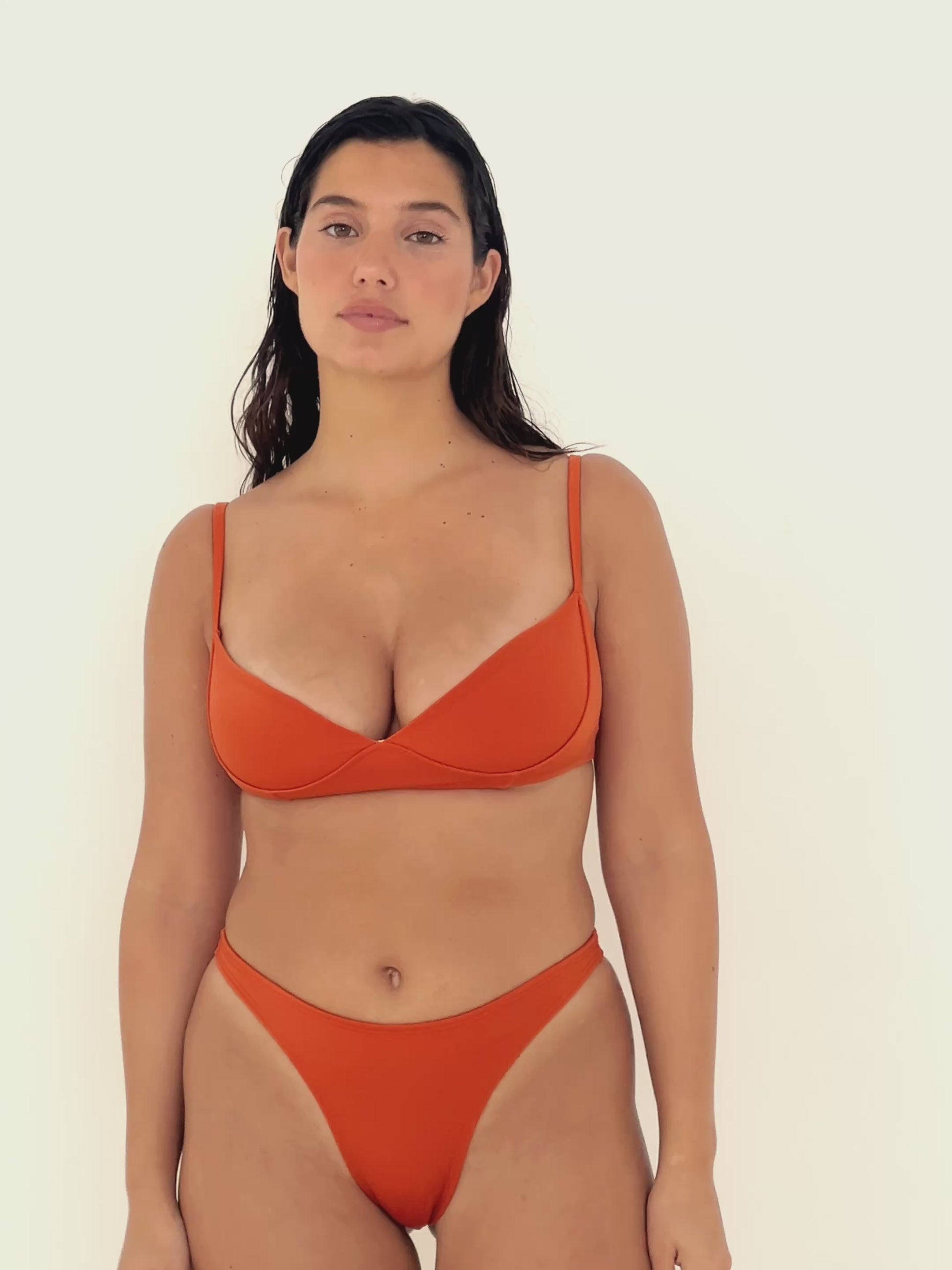 “Bruma” é um biquíni sofisticado e intemporal. Traz um top meia taça, com fecho nas costas e estrutura que realça o peito com discrição e segurança. A calcinha de corte clássico completa o conjunto com conforto e feminilidade. Um biquíni que assenta bem e transmite presença.